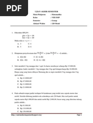 1 from Soal uas matematika kelas 8 semester 2 kurikulum 2013. Check spelling or type a new query. Maybe you would like to learn more about one of these? We did not find results for: