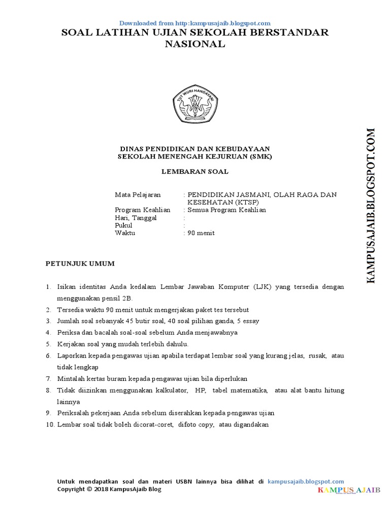 Soal Usbn Penjas Smk 2019 : Soal Dan Jawaban Penjas Tentang Narkoba Kumpulan Contoh Surat Dan Soal Terlengkap - Soal usbn penjas smk 2019.. We did not find results for: Check spelling or type a new query. Maybe you would like to learn more about one of these? Soal usbn penjas smk 2019.